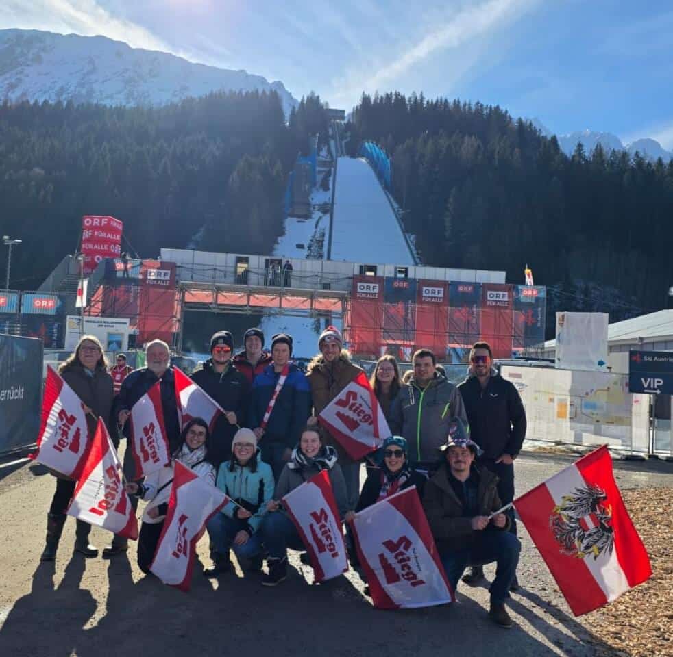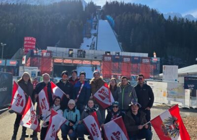 Am 28. Februar 2026 machten wir uns gemeinsam mit unseren PartnerInnen und Freunden auf den Weg zum Skiflug Weltcup am Kulm. Mit einem 50-Sitzer-Bus ging es in guter Stimmung Richtung Tauplitz, um dieses besondere Sportereignis live mitzuerleben.